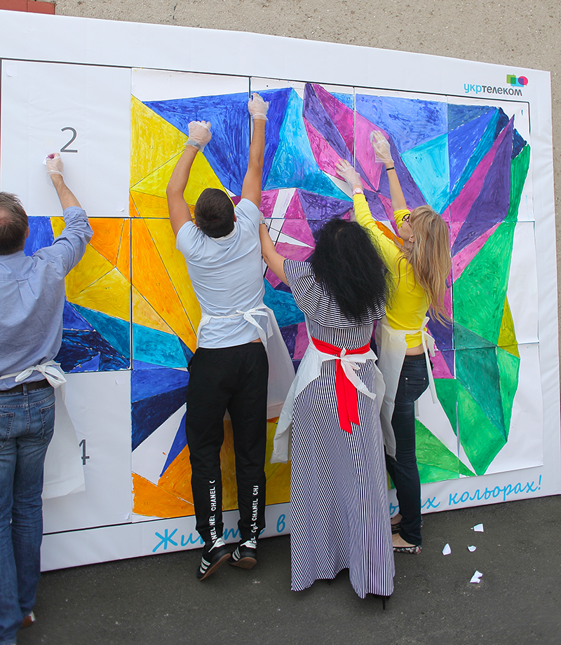 І в кожному макрорегіоні (Київ, Львів, Харків, Одеса, Дніпро) - цю велику розмальовку мали прикрасити співробітники на корпоративному івенті, що ми організували.